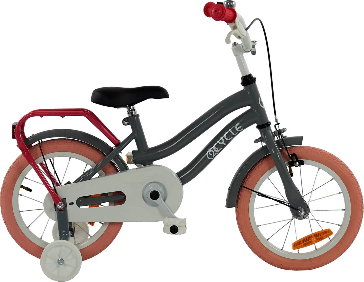 Schitterende 14 inch 2Cycle Pretty meisjesfiets met roze banden. Deze vrolijke grijs met roze meisjesfiets heeft afneembare zijwielen, terugtraprem, bel en reflectoren, verder zijn uiteraard het zadel en stuur in hoogte verstelbaar zodat u jaren plezier kunt hebben van deze kinderfiets.