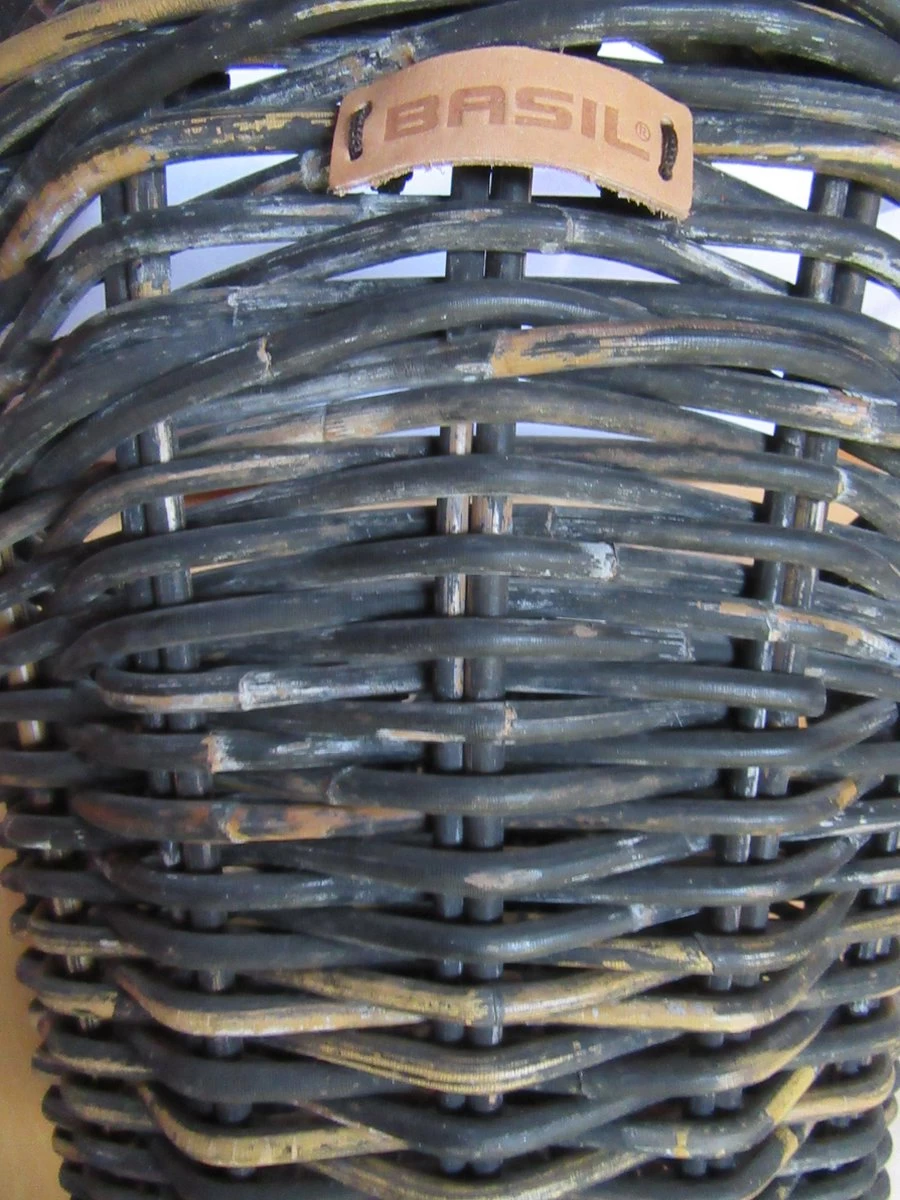 De Basil Darcy L is een stijlvolle rotan fietsmand met een ruime inhoud voor voorop je fiets. Deze fietsmand maakt jouw fietsrit niet alleen makkelijker maar ook leuker, of je nu gaat picknicken in het park of een fietsritje naar de supermarkt maakt. De rotan mand is handgemaakt en zwart gemêleerd van kleur, wat zorgt voor een robuuste uitstraling. Met behulp van de lederen riempjes is de mand eenvoudig voorop het stuur te hangen of op de Basil voordrager te monteren. De inhoud van de mand is 35 liter waardoor er ruimte genoeg is voor je boodschappen of picknickspullen. Deze Basil Darcy fietsmand hoort bij de Basil Noir collectie. Er zijn van deze lijn diverse fietstassen en accessoires zoals zadelhoezen en fietsbellen verkrijgbaar. Wil jij graag een Basil voordrager voor aan je stuur? Kijk dan hier voor dit systeem. Eigenschappen: Voor het (feilloos) bevestigen van deze mand maak je gebruik van de lederen riempjes. Door de ruime inhoud van 35 liter kan je er heel wat boodschappen en picknickspullen in kwijt. Het natuurlijke materiaal rotan zorgt voor een natuurlijke maar stijlvolle uitstraling.