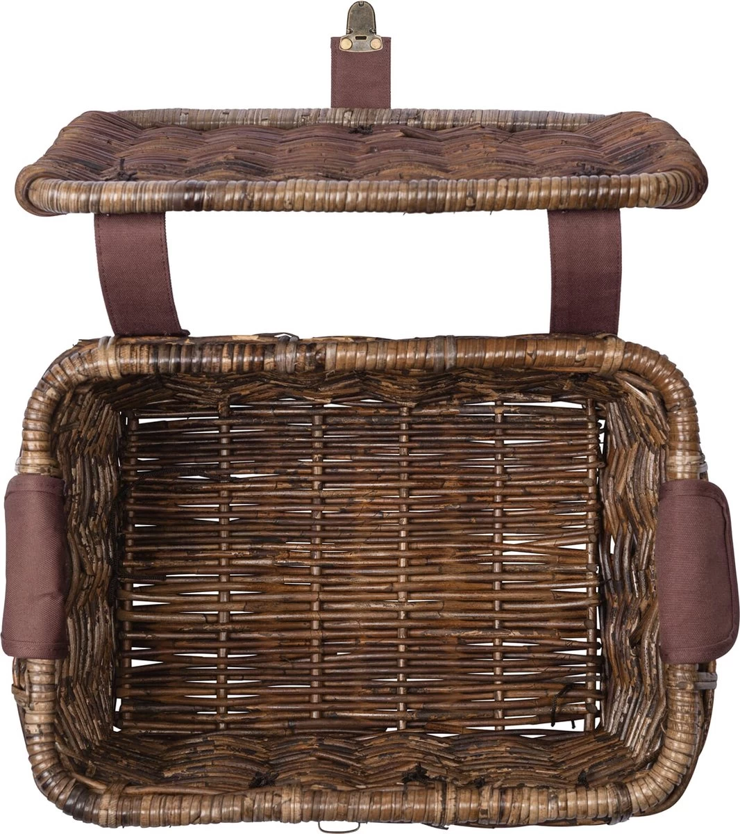De Basil Denton M is een luxe rotan opbergmand voor op een dames- of herenfiets en bovendien voorzien van een deksel met sluiting. De mand valt direct op vanwege de nature brown kleur en een diversiteit aan details. Deze praktische opbergkoffer is een aanwinst voor het doen van je dagelijkse boodschappen of voor het vervoeren van je sporttas. De mand komt ook goed van pas bij een heerlijke picknick. Ideaal tijdens een fietsvakantie in de lente of bij mooi zomerweer. Het is een stijlvolle mand waarmee je zeker gezien mag worden. De handgrepen en kunstlederen details geven de koffer een luxe uitstraling. Deze rotan fietsmand wordt geleverd zonder bevestigingsmateriaal, maar kun je monteren op de voordrager van je fiets in combinatie met een crate mounting set die apart dient aan te schaffen. De leren handvatten maken het mogelijk om de fietsmand overal mee naartoe te nemen. Wil je een exclusieve rotan fietsmand van goede kwaliteit? De Basil Denton M is zeker een slimme keuze. Bekijk ook zeker de andere opbergkoffers en fietsmanden van het merk Basil. De mand is gemaakt van natuurlijk rotan materiaal. Hierdoor heeft de mand niet alleen een mooie uitstraling maar is deze ook nog eens milieuvriendelijk, licht van gewicht en toch sterk. Wij kiezen voor de beste biologische soorten rotan en wilgenteen soorten maar het blijft een natuurproduct. Dit betekent dat het materiaal gevoelig is voor weersinvloeden. Daarnaast kunnen de afmetingen van de mand 1 – 2 cm variëren. Binnenmaat L 36 x B 23 x H 20 cm Buitenmaat L 39 x B 27 x H 25 cm Eigenschappen: De rotan fietsmand monteer je eenvoudig op je fiets met een crate mounting set. De mand heeft een luxe uitstraling dankzij de kunstlederen details. Deze praktische opbergkoffer komt voor diverse doeleinden goed van pas en is daarom ideaal voor zowel mannen als vrouwen. Het deksel met sluiting voorkomt dat je spullen of boodschappen op straat komen te liggen. Je vervoert daardoor altijd veilig je bagage.
