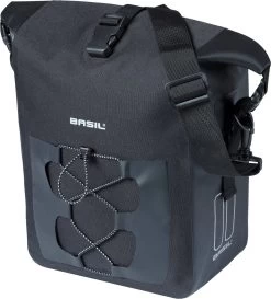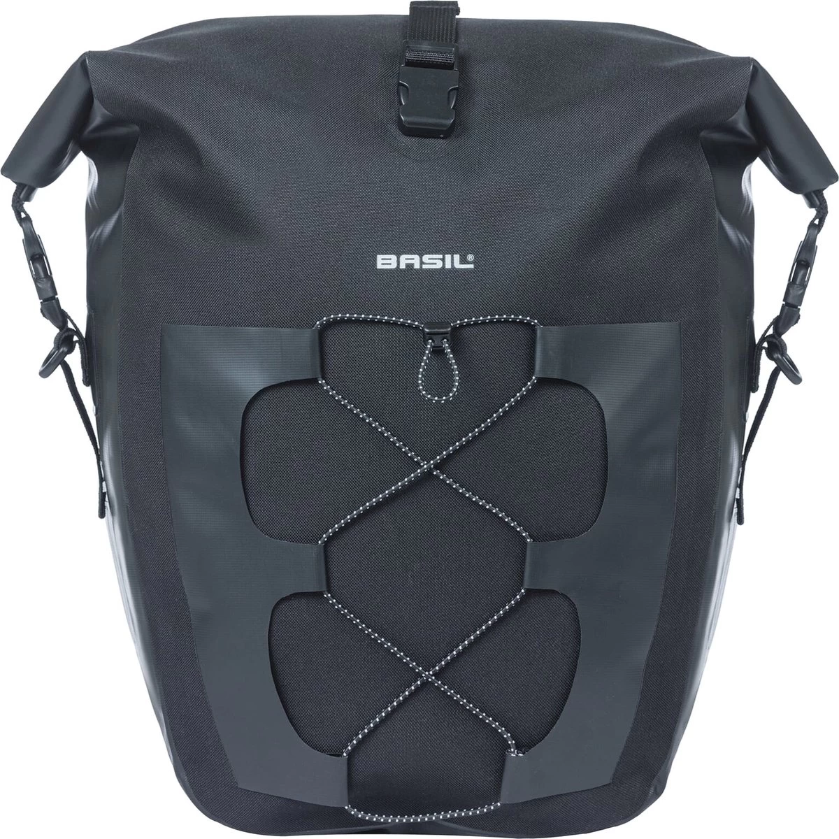 De Basil Navigator Waterproof L is een enkele fietstas voor achterop een dames- of herenfiets. De sportieve zwarte tas heeft een inhoud van 25 tot 31 liter.