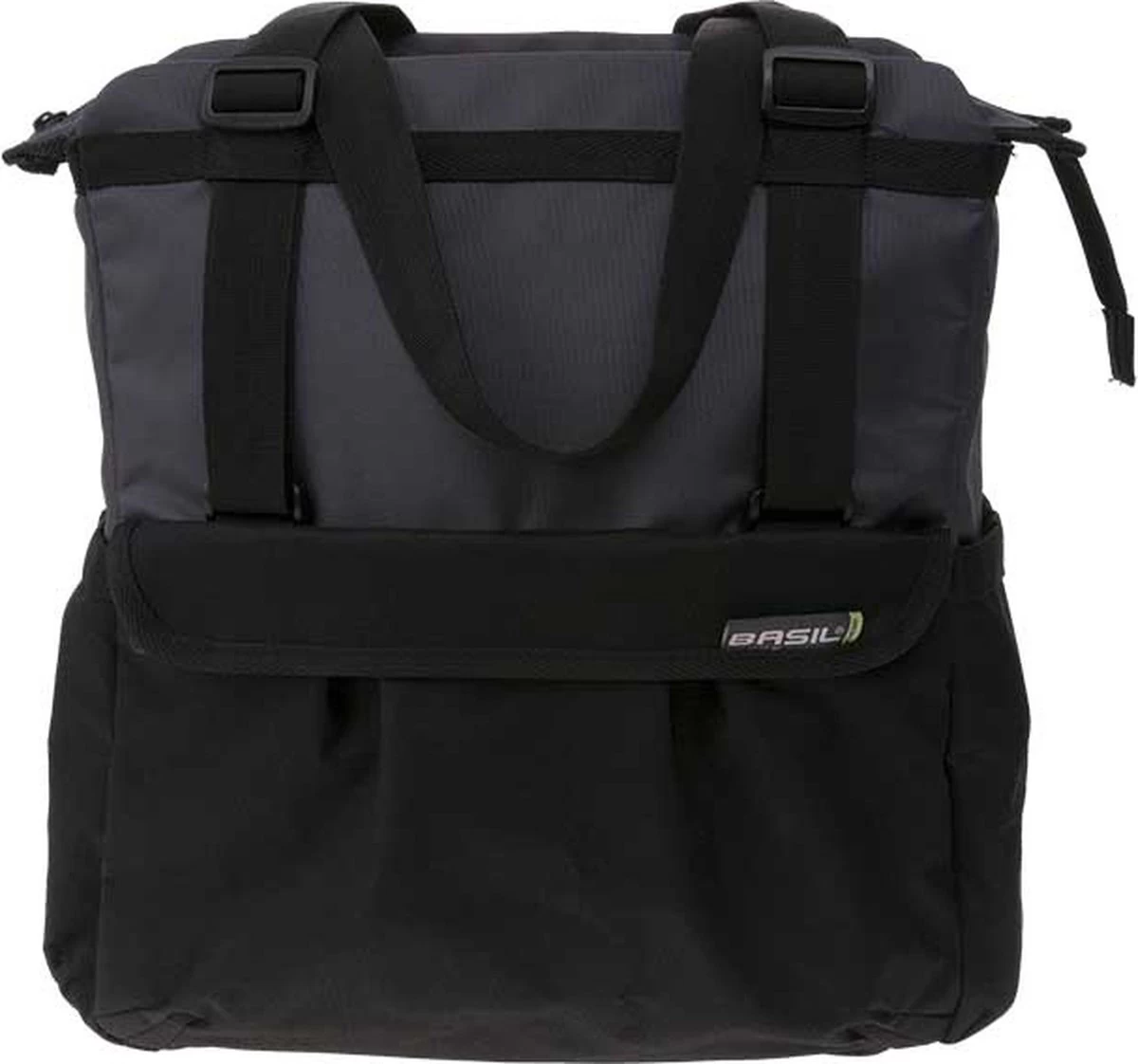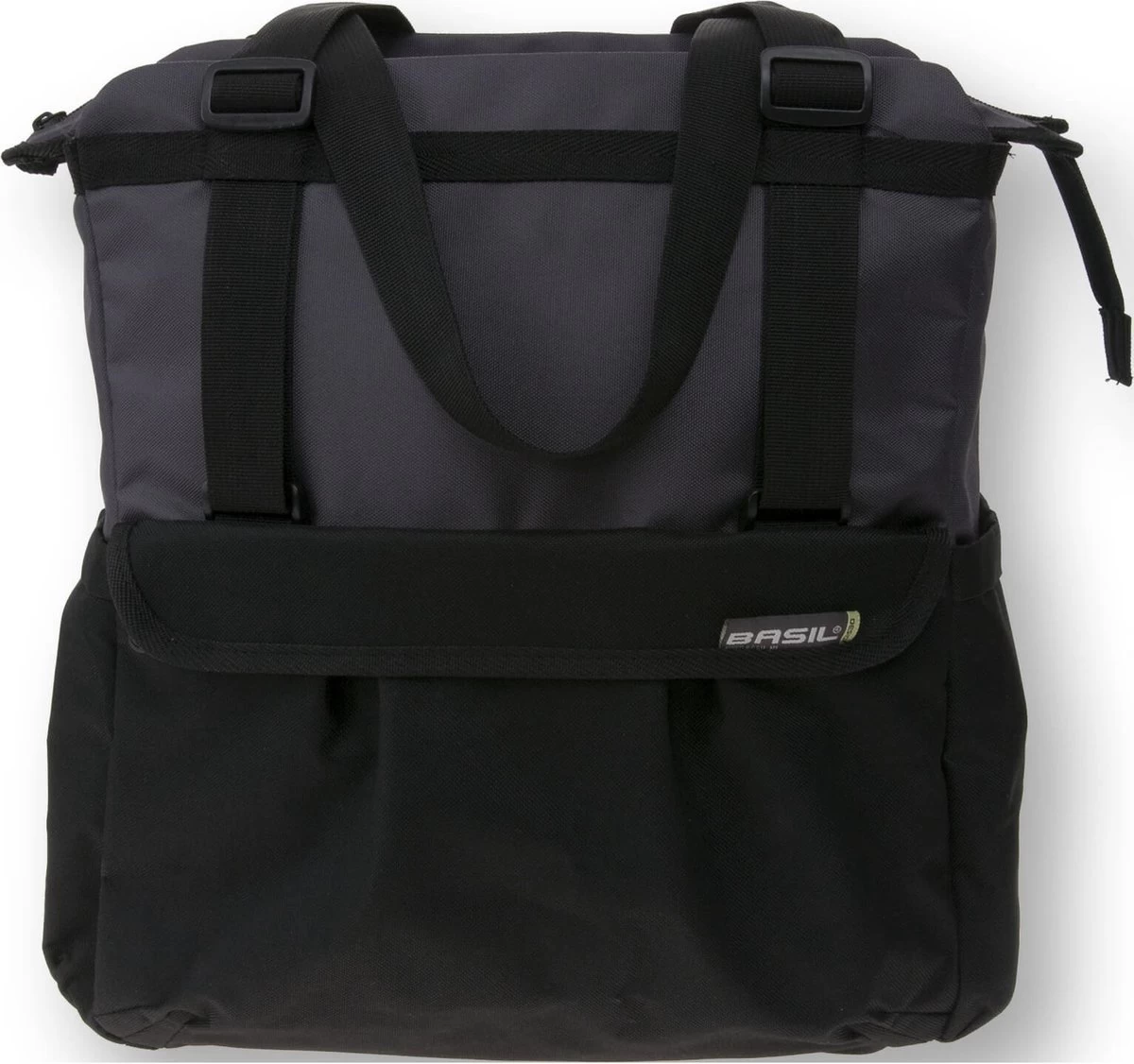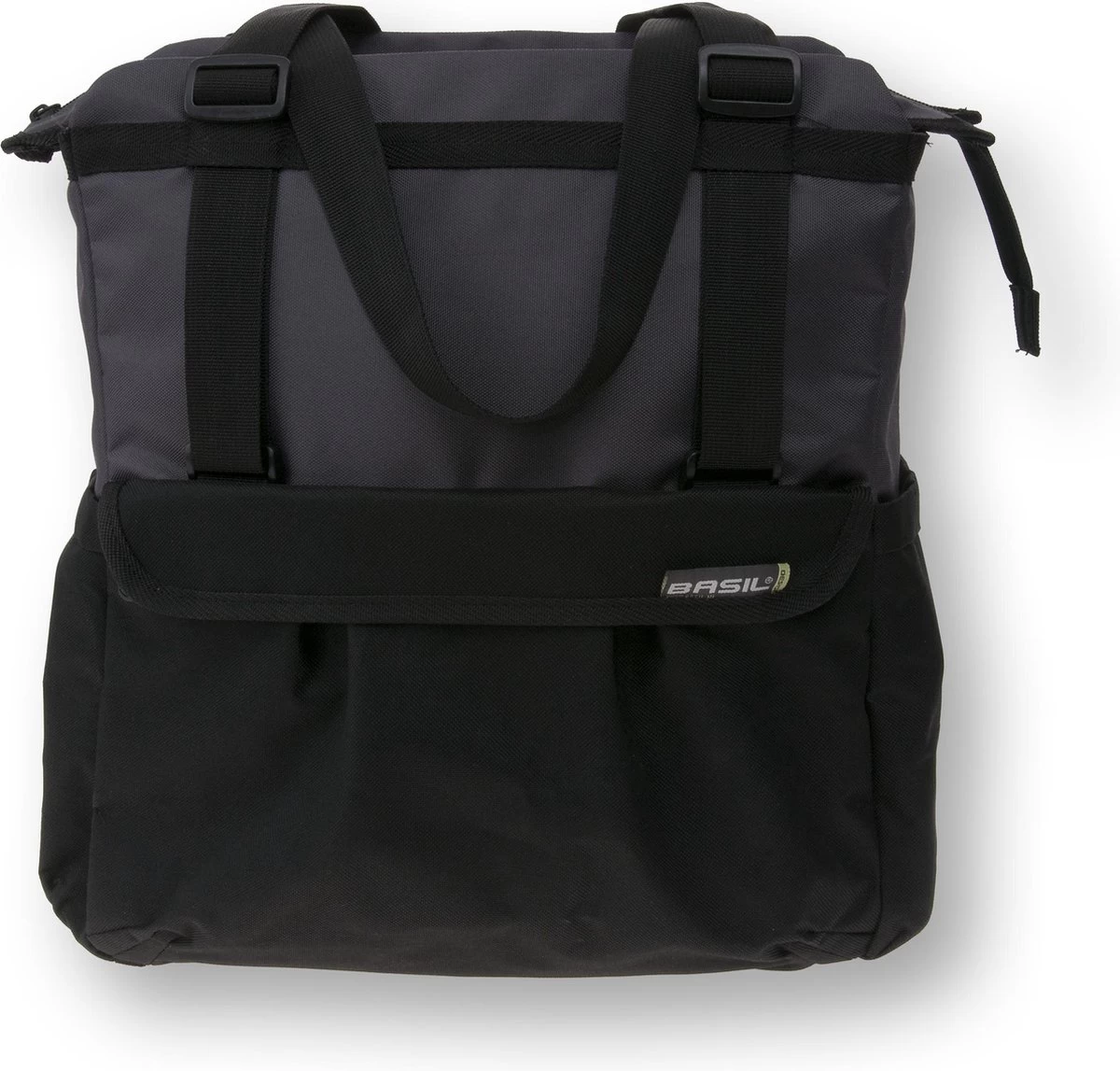 De Basil Shopper XL is een sportieve en trendy fietstas die je aan je bagagedrager bevestigt dankzij het Basil Hook-On System. De tas is verkrijgbaar in de kleur zwart. Deze ruime enkelzijdige boodschappentas is handig als je de supermarkt of markt bezoekt. De tas is voorzien van een groot voor- en binnenvak en daarnaast ookvoorzien van rits- en zijvakken. De totale inhoud van de Basil Shopper XL bedraagt 20 liter. Niet alleen voor een bezoek aan de winkel komt de tas goed van pas. Het is een goede aankoop als je graag naar het strand of een recreatiegebied fietst. Deze shopper is gemaakt van waterafstotend polyester. . De verstelbare draagriemen maken het mogelijk om er schouderriemen van te maken. Beide zijkanten van de fietstas zijn bovendien voorzien van reflectiemateriaal. Daardoor ben je ook in het donker goed zichtbaar voor andere verkeersdeelnemers. In het ritsvak van de Basil Shopper XL vind je fietshaken voor het vastmaken aan je bagagedrager. Haal deze zwart/antraciet fietstas in huis of bekijk de andere modellen fietstassen uit de Basil collectie voor het maken van een weloverwogen keuze. Eigenschappen: Met een inhoud van 20 liter is de tas ideaal voor het doen van grote boodschappen of een bezoek aan het strand. De draagriemen zijn verstelbaar en daardoor te verlengen naar schouderriemen. Reflecties op zijkanten maken je goed zichtbaar in het donker en bevorderen de veiligheid op de weg.
