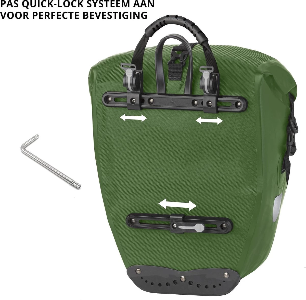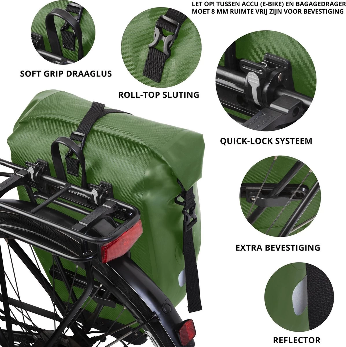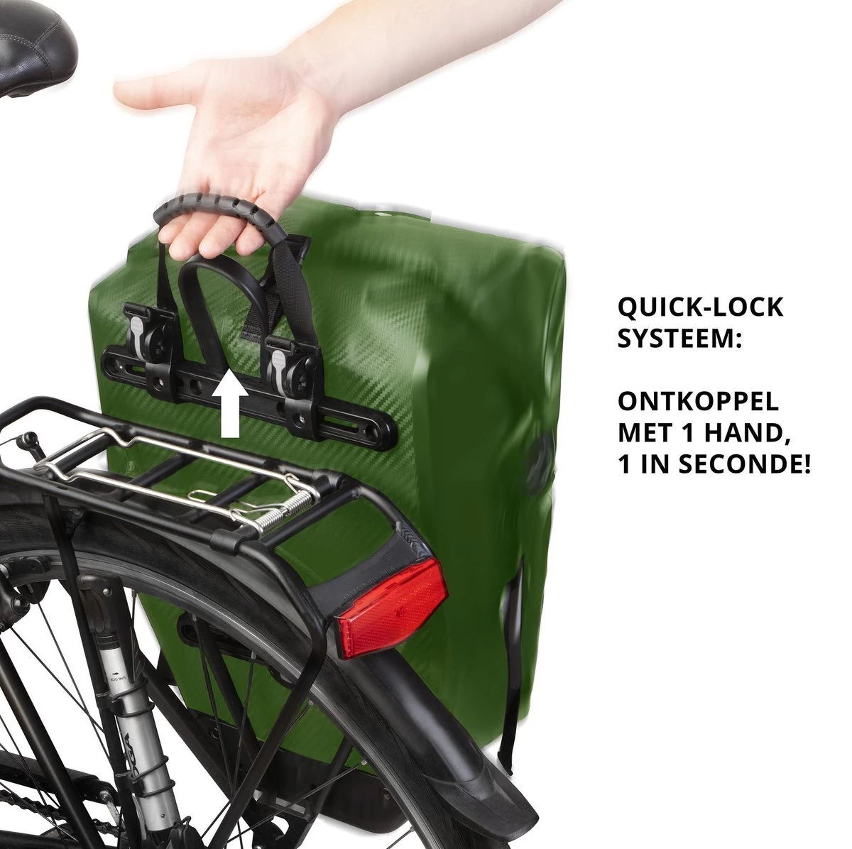 ► Quick-Lock systeem: heel makkelijk stevig te bevestigen aan iedere bagagedrager.
