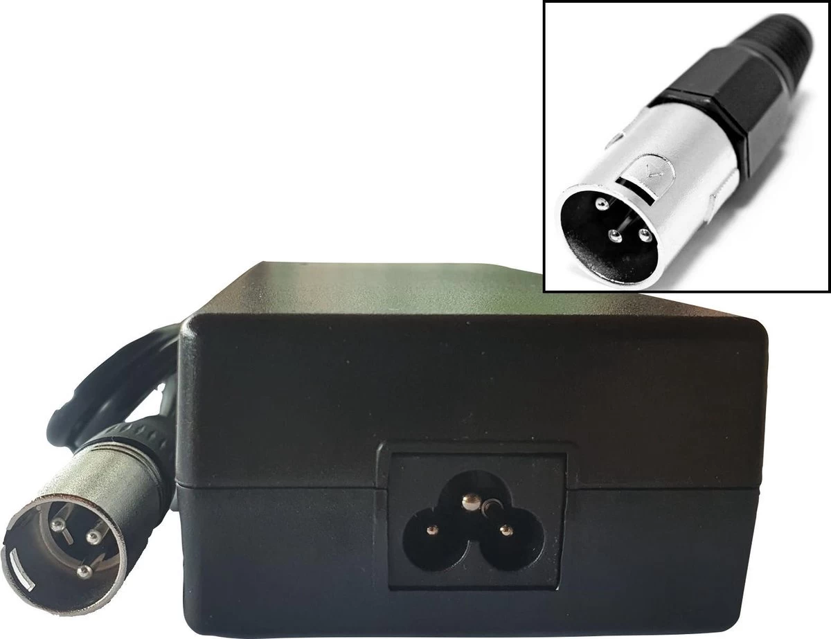Deze Li-Ion batterij lader is geschikt voor alle 36V fietsaccu’s met een XLR 3 pins aansluiting. Deze kwalitatieve lader is voorzien van de keurmerken CE en RoHS en voldoet aan de belangrijkste kwaliteitseisen. Deze batterij lader kan zonder problemen de originele lader vervangen of als reserve lader worden gebruikt.