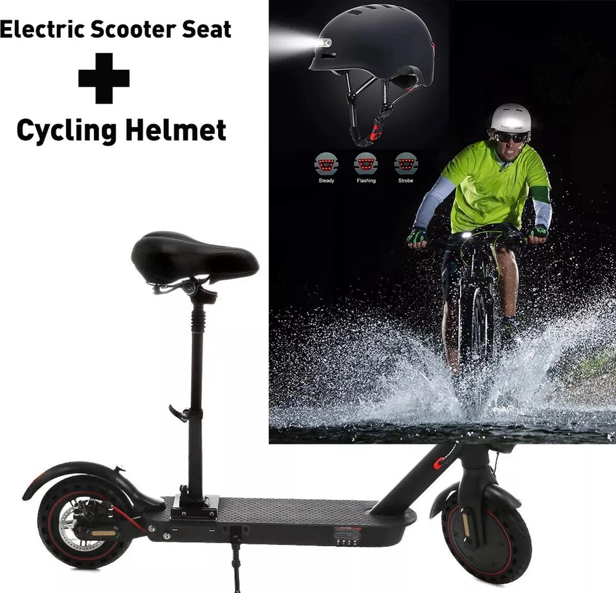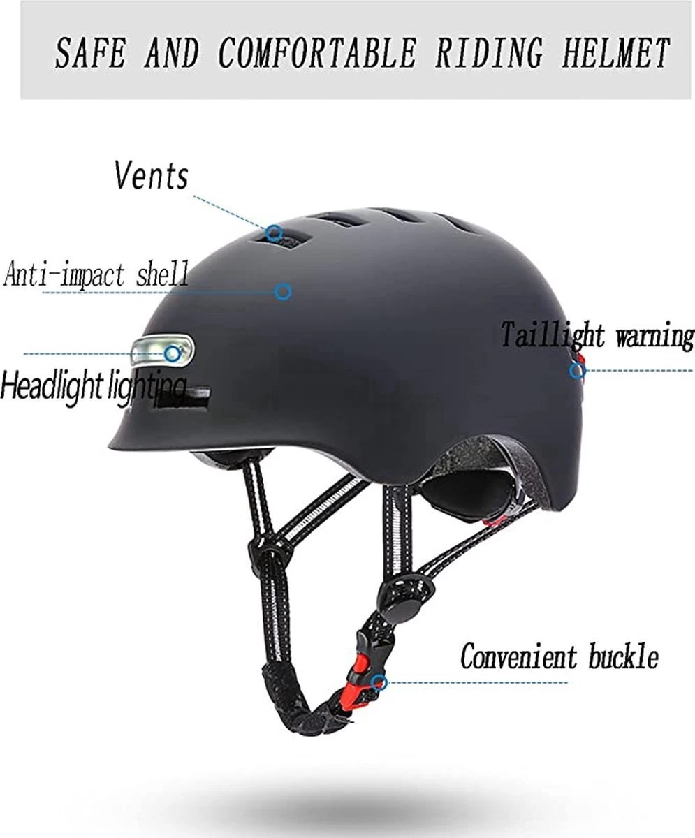 Fietshelm – Met Voor- En Achterlicht-Skatehelm – Maat-L 58-61cm-Helm Mat-Zwart – LED Verlichting