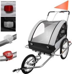 Met deze prachtige fietskar kunt u uw kind of kinderen comfortabel en veilig vervoeren. Het kan 1 of 2 kinderen dragen met een maximumgewicht van 35 kg. Dankzij de veiligheidsgordels kunt u uw kinderen nog veiliger vervoeren. Hij is zeer praktisch voor uitstapjes, fietstochten, vakanties en de kleintjes zullen er veel plezier aan beleven. Ook geschikt voor honden.