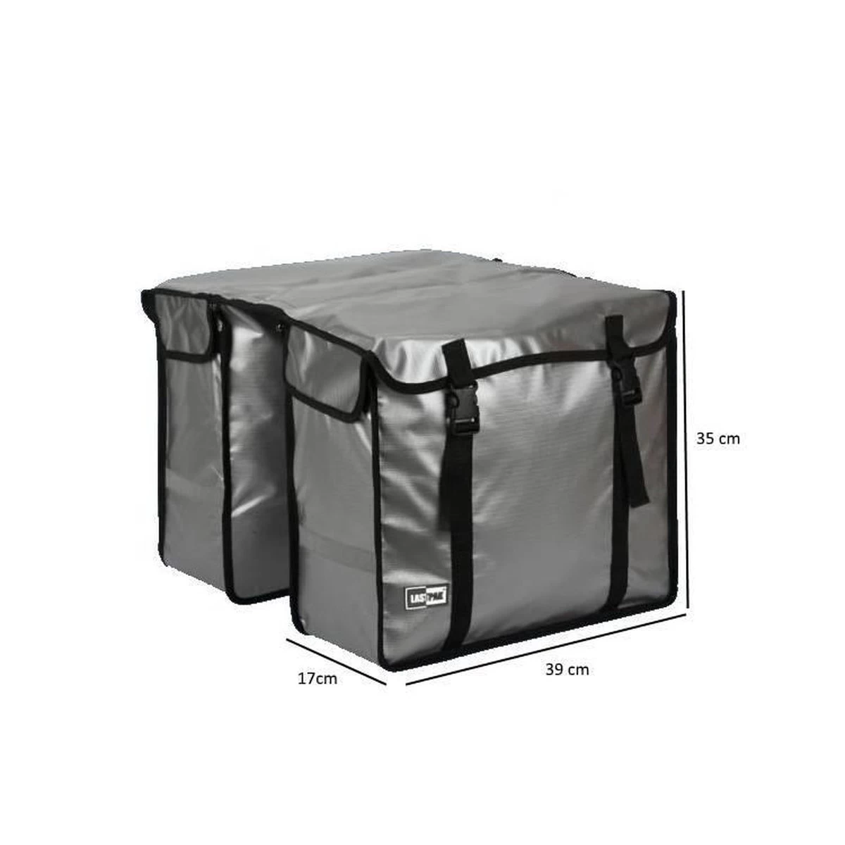 Neem eenvoudig al uw spullen of boodschappen mee met deze dubbele fietstas. Niet zomaar een tasje maar een met mooie afwerking en voldoende plaats voor alles. De fietstas heeft een zorgvuldige afwerking en extra versterkte hoeken. De fietstas heeft ook extra zijflappen met clips tegen regendruppels en reflecterende strips die voor veiligheid zorgen in het donker. De afmetingen van deze dubbele fietstas zijn 37 × 30 × 14cm. De fiets tas heeft een capaciteit van 46 liter. De fietstas heeft een dik geweven stof die zorgt voor stabiliteit en duurzaamheid.