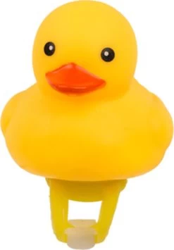 Ben je opzoek naar een fietsbel, maar wil je net even iets orginelers? Wat dacht je van deze piepende eend met LED licht voor op de fiets? Met deze vrolijke gele badeend pimp je jouw fiets. Je monteert het eendje heel eenvoudig aan je stuur. Door in het badeendje te knijpen begint hij vrolijk te piepen. Dus handig als bel te gebruiken. Door het LED lampje geeft het eendje ook nog eens licht. Zo ben je extra goed zichtbaar als je in het donker fietst. Bovendien brengt deze eend een lach op ieders gezicht als jij voor bij rijdt.