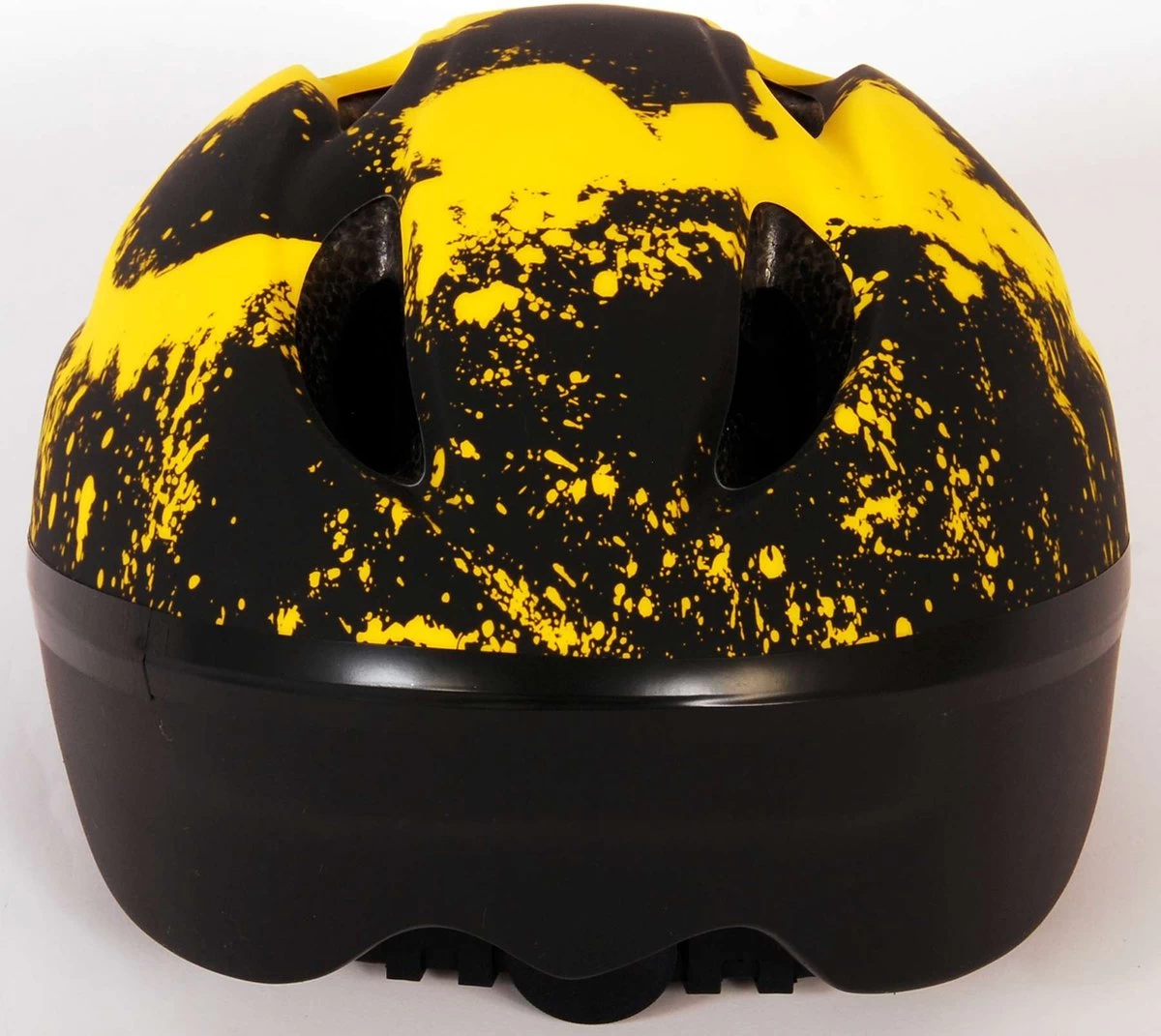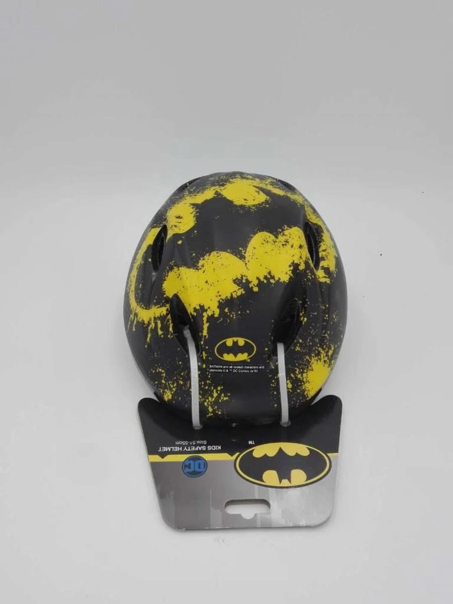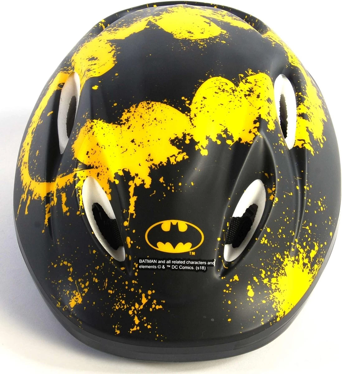 Volare Kinderfietsen beschikt over een grote collectie licentie helmen. Een daarvan is deze prachtige Batman fietshelm. De mooie zwart met gele kleur en het Batman logo geven de helm een perfecte uitstraling. Met de draaiknop is de hoofdomtrek van de helm verstelbaar van 52 tot 56 cm. Daarbij is de onderkant van de helm ook bedekt. De helm weegt slechts 200 gram. Dat maakt hem extra licht en dus makkelijk te dragen. De helm is naar de strengste eisen van het TÜV/GS goedgekeurd.