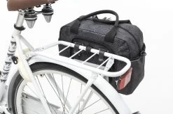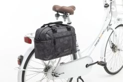 De fietstas wordt aan de bagagedrager bevestigd met New Looxs kunststof haken. Dat maakt deze tas geschikt voor vrijwel alle fietsen, ook elektrische. Je kunt de tas extra vastzetten met het klittenbandje tussen de haken. Als je de tas van de fiets haalt, dek je de haken af met een ritsvakje. Hierdoor heb je geen last meer van de haken en ziet de tas er uit als een gewone schoudertas!