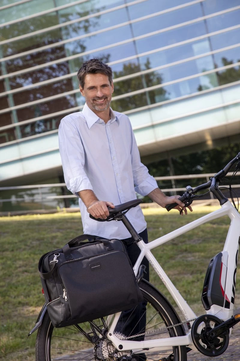 Wil jij jouw laptop of tablet meenemen op de fiets? Deze schoudertas is eenvoudig op de fiets te monteren en weer mee te nemen.
