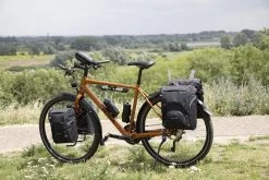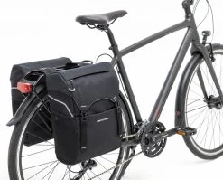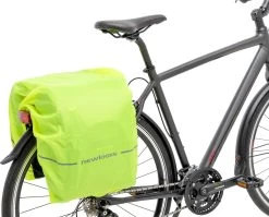 Nooit meer natte spullen met deze dubbele fietstas met regenhoes. Deze dubbele tas past op Racktime bagagedragers.