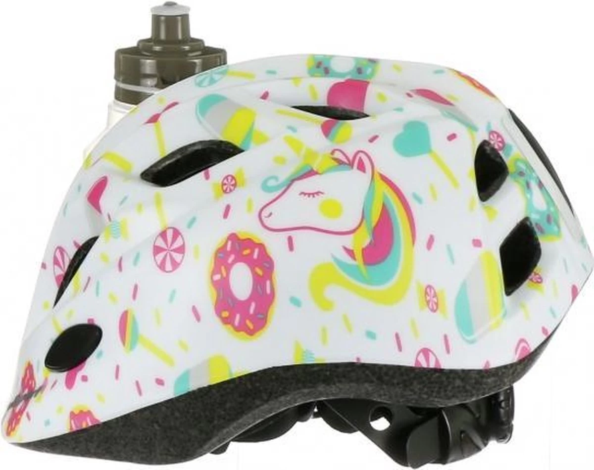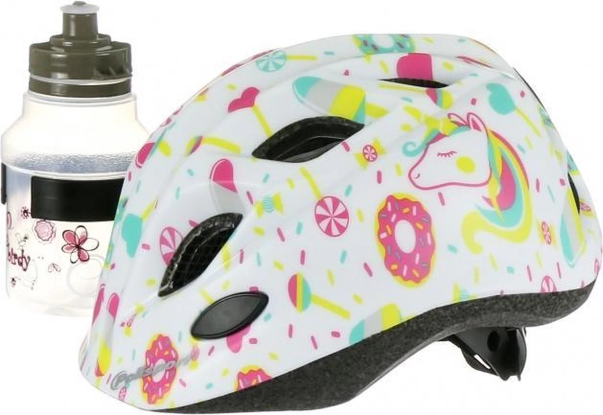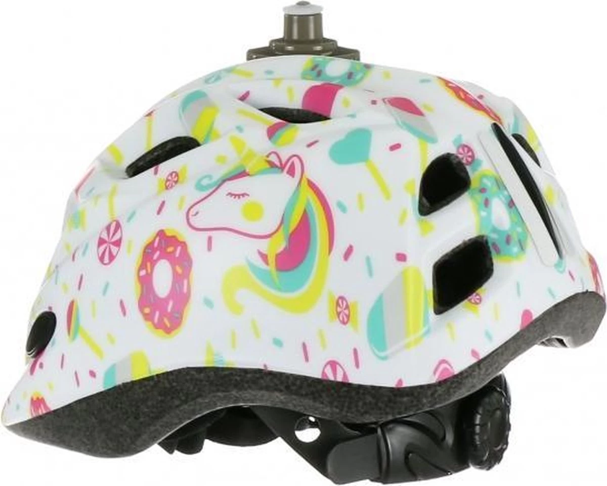 Kinderhelm met 10 ventilatiegaten, makkelijk aanpasbare hoofdring, 2 reflecterende stickers, inmold technologie.