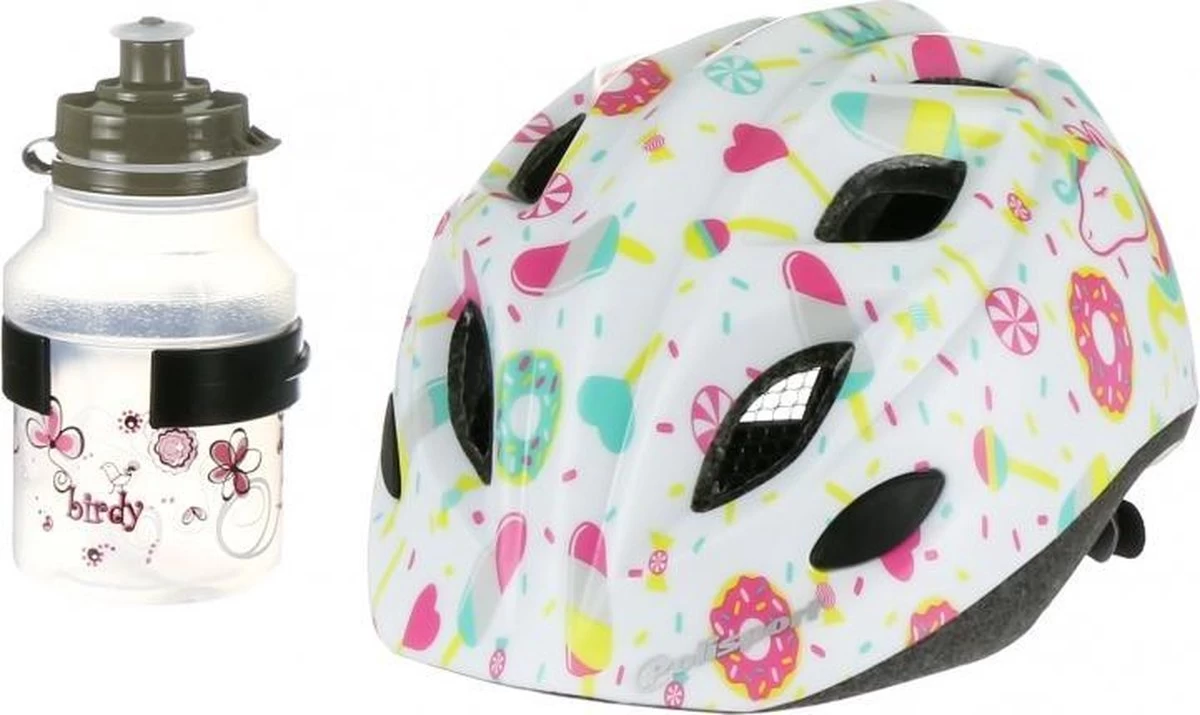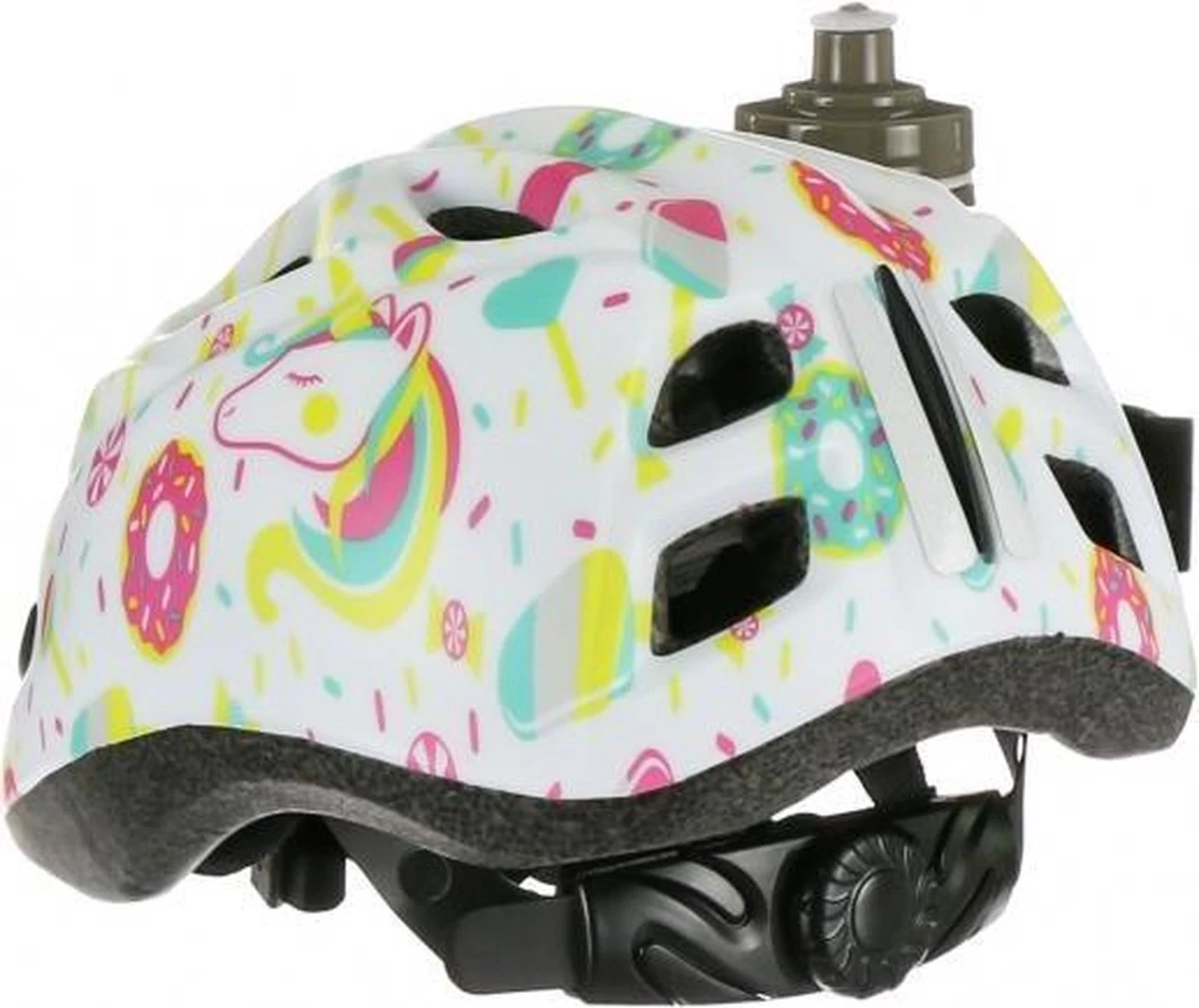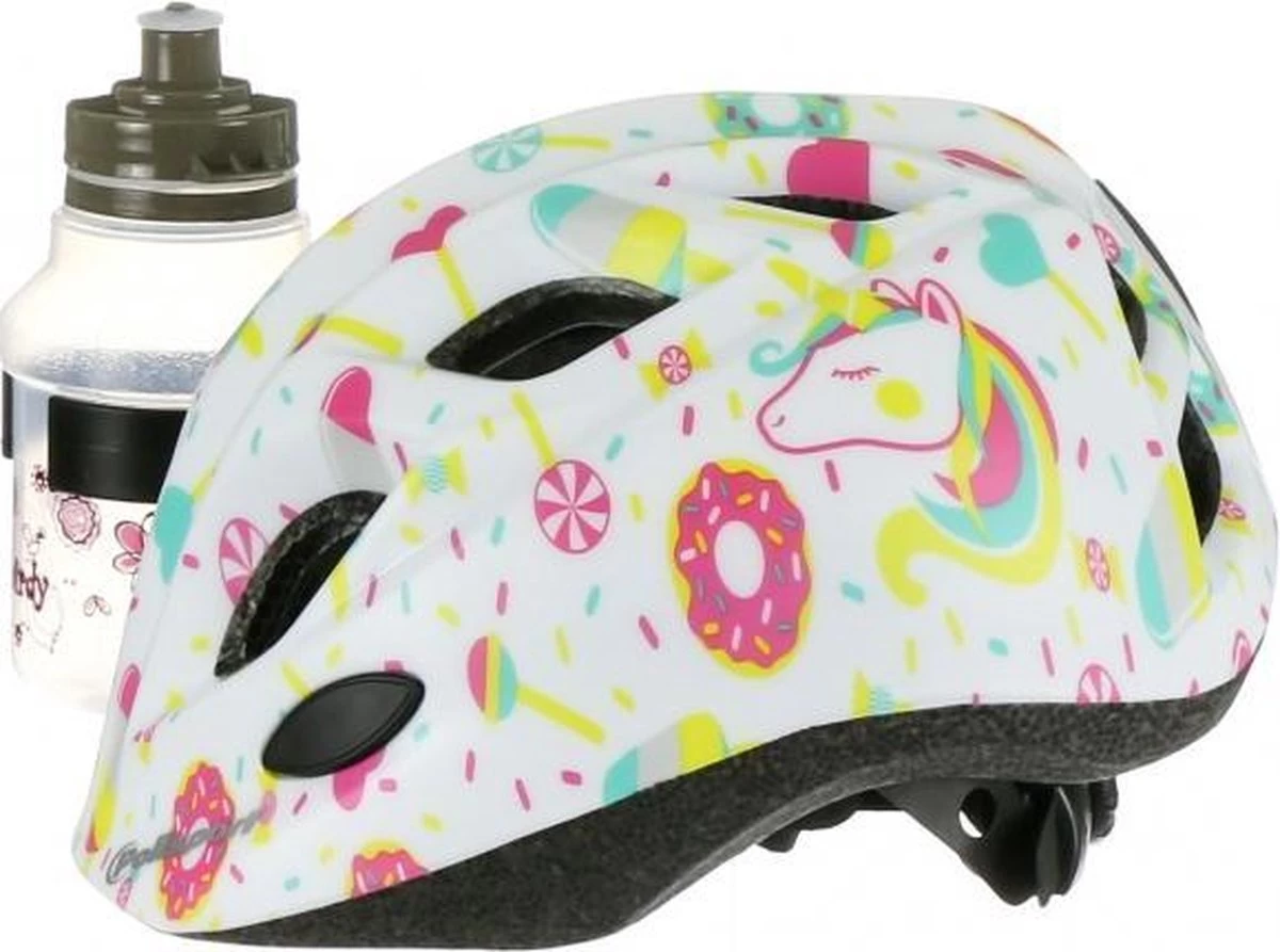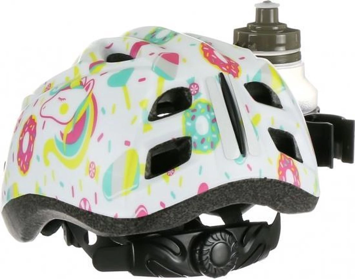 Kinderhelm met 10 ventilatiegaten, makkelijk aanpasbare hoofdring, 2 reflecterende stickers, inmold technologie.