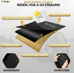 Deze fietshoes is bestand tegen alle weersinvloeden. Regen, harde wind, sneeuw, stof of de hele dag felle zon, deze hoes weerstaat dat prima! De naden zijn zeer goed gestikt en voorzien van een PU coating waardoor water geen kans heeft om door te dringen.