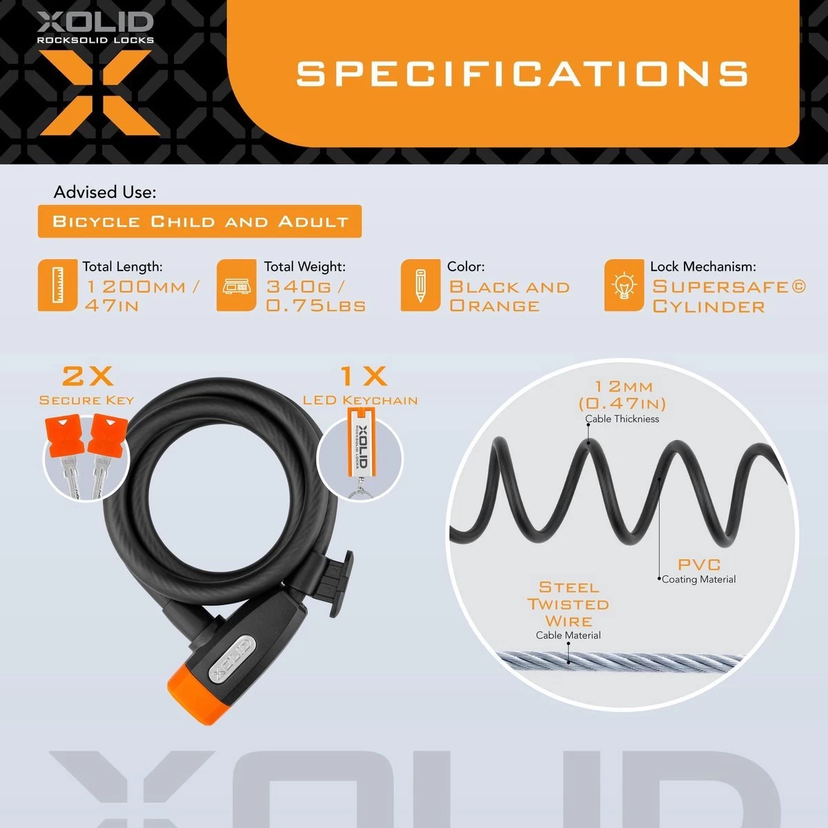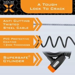 Dit Solide Slot (400g) is 120CM lang en heeft een doorsnede van 12MM en is daarmee uiterst geschikt voor het afsluiten en beveiligen van een fiets.